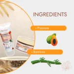 - Papaya Face Cream: A lightweight, nourishing cream that hydrates and restores your skin’s natural glow. The cream helps reduce the appearance of dark spots and uneven tone while improving elasticity for a smooth and youthful finish.